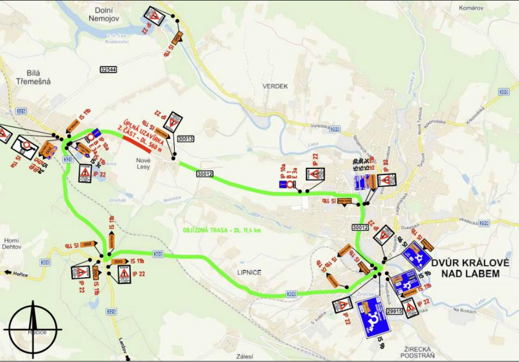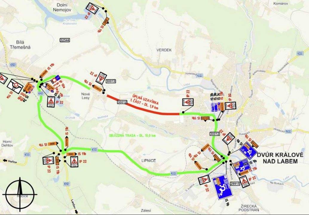 Od úterý 7. dubna do čtvrtku 9. dubna 2026, půjde o dokončení opravy 2 km dlouhého úseku silnice mezi Dvorem Králové nad Labem a Novými Lesy, včetně pokládky poslední asfaltové vrstvy vozovky. Následně bude pokračovat rekonstrukce silnice v 560 m dlouhém úseku Nové Lesy – Bílá Třemešná, která by měla proběhnout v termínu 10. dubna až 24. května 2026.