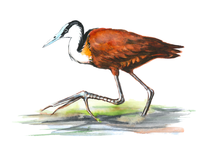 Má nápadně dlouhé nohy a prsty, díky kterým je schopen snadno běhat po listech leknínů. Jedná se o polyandrický druh - samice hnízdí s více samci. U tohoto druhu se objevuje i polygamie a to tehdy, když nová samice vyžene starou samici. Velmi málá hnízdní úspěšnost, okolo 26 %.