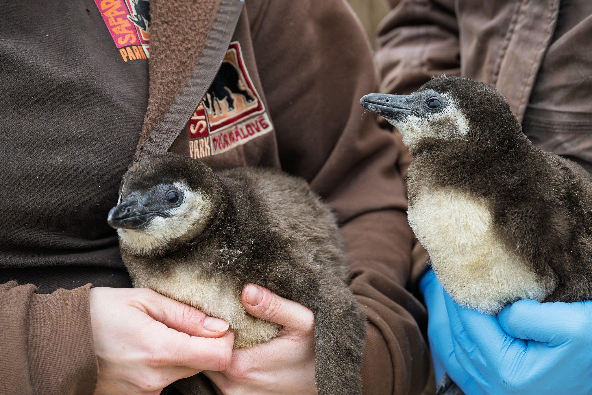 „To dopadlo nad očekávání dobře. Vylíhla se dvě mláďata a k našemu překvapení se usilovně a úspěšně starala o oba potomky,“ doplňuje zoolog Michal Podhrázský. Bez významné pomoci lidí Fleury a Ellie odchovali první dvojčata v historii chovu ve Dvoře Králové. Ačkoli to, že tučňáci snesou více vajec, není neobvyklé, odchov dvojčat jedněmi rodiči je zcela mimořádný v přírodě i lidské péči. Tučňáčí mláďata chovatelé na konci týdne odebrali z budky a přemístili je do „školky“ v zázemí. Tam se budou, jak je zaběhlou praxí, učit přijímat potravu z ruky chovatelů a rozplavávat v malém bazénku. Pak se připojí ke kolonii dospělých.
